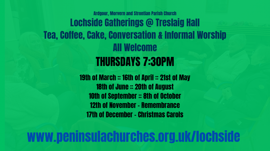 Every Sunday – Worship at Ardgour Church 10am (11am on 5th Sundays of the Month) – You will be very welcome.